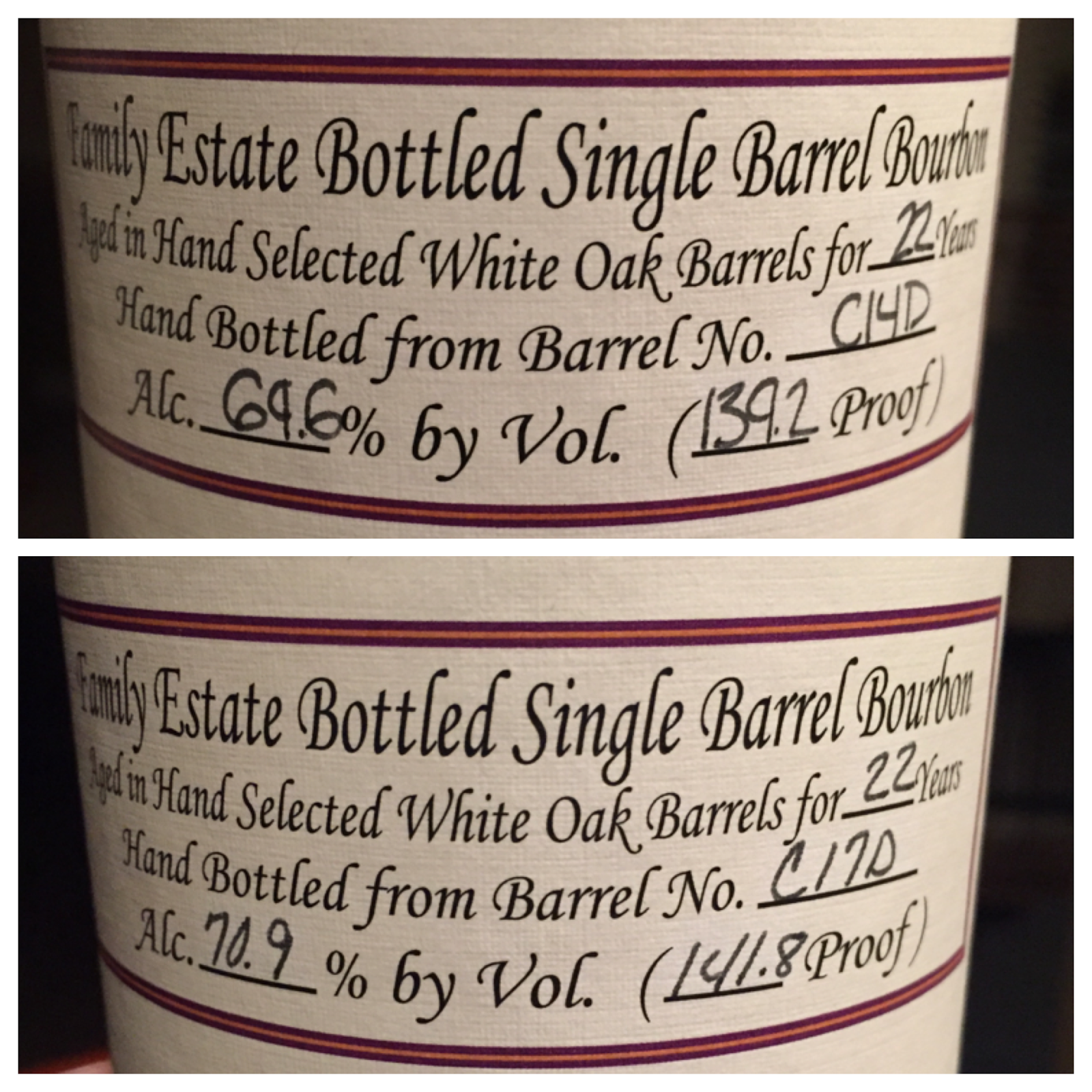 Additionally, tasting single barrels is fascinating to me. I’ve had private barrels that were from the same distillation run and were aged literally right next to each other for the same amount of time, that turned out pretty different. And now with Willett, some lucky people have been able to get C14D, C16D, C17D, and C18D, which have all been 22-year wheated Single Barrel Bourbons with typical similarities and differences.